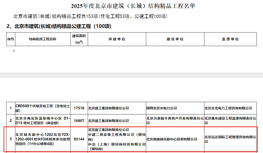7月1日,首旅總部大樓項目憑借卓越的工程品質(zhì)與創(chuàng)新技術(shù)應(yīng)用,成功斬獲2025年度北京市建筑(長城)結(jié)構(gòu)精品工程。這一殊榮不僅是對項目建設(shè)成果的高度認(rèn)可,更是對參建各方精益求精、追求卓越的生動詮釋。